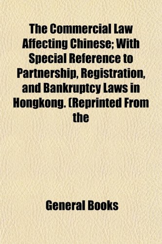 Title: The Commercial Law Affecting Chinese; With Special Reference to Partnership, Registration, and Bankruptcy Laws in Hongkong. (Reprinted From the \"china Mail.\") Publisher: Hongkong, Printed at the \"China mail\" office Publication date: 1882 Subjects: Commercial law -- Hongkong Partnership Bankruptcy -- Hongkong Notes: This is an OCR reprint. There may be numerous typos or missing text. There are no illustrations or indexes. When you buy the General Books edition of this book you get free trial access to Million-Books.com where you can select from more than a million books for free. You can also preview the book there.